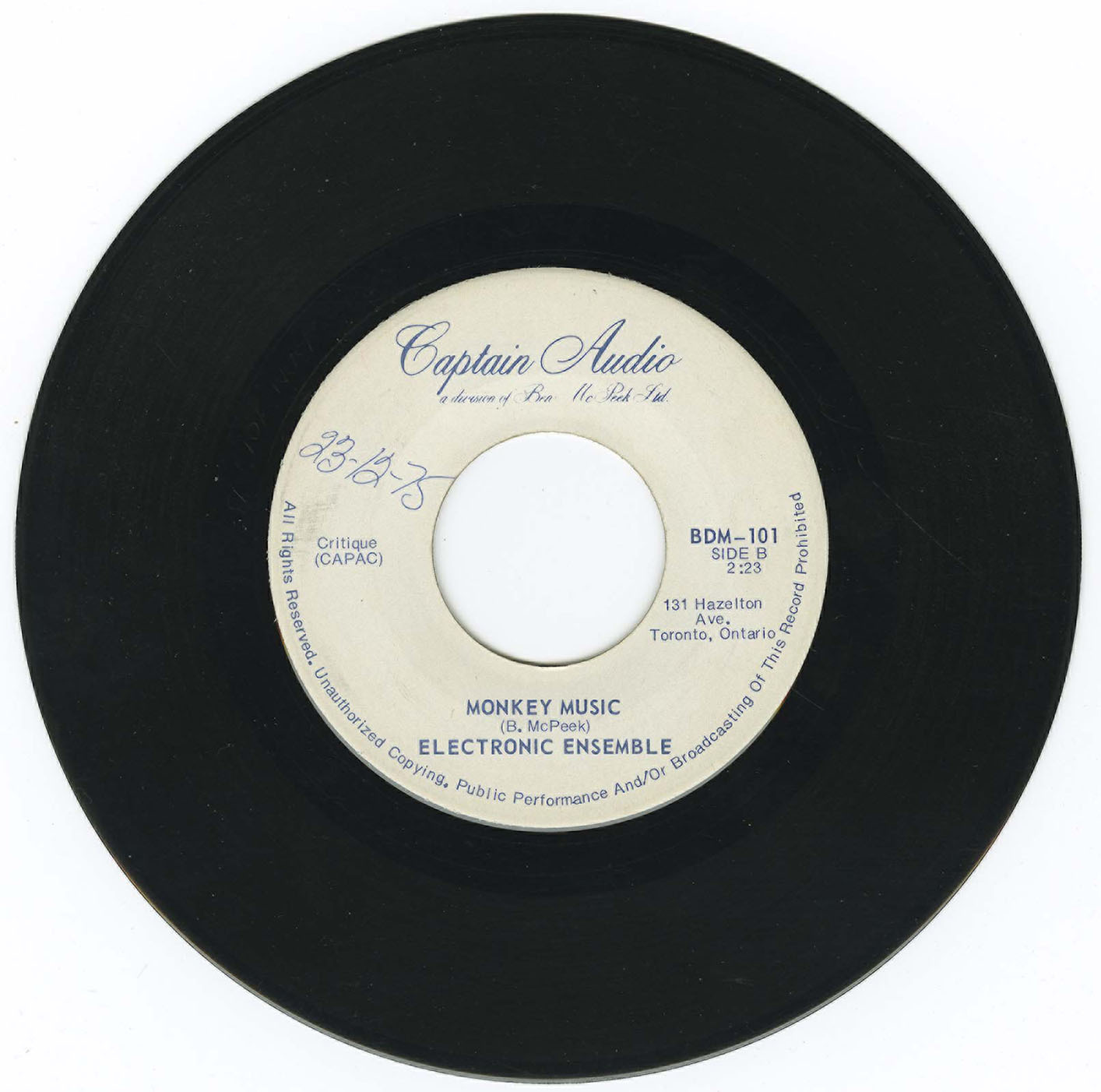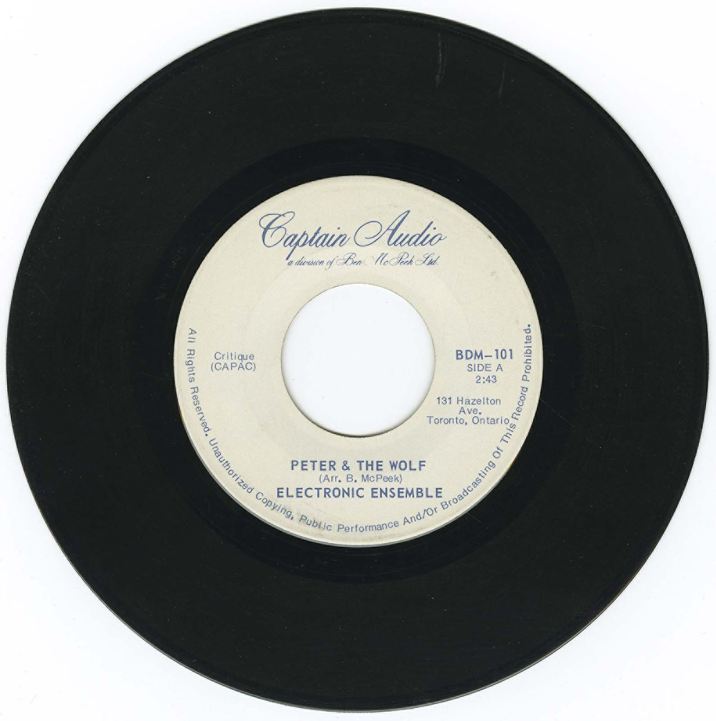 Label: Captain Audio (A Division of Ben McPeek Ltd.) BDM-101