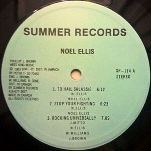 Recognizing Ellis' talent, Brown released Noel's "Reach My Destiny" as one side of a split disco 45 in 1978. The song didn't generate much interest, but 1979's "Rocking Universally," recorded at Summer with help from Jackie Mittoo, did, even charting in Europe as a 12" single. Four years later, in 1983, Summer released a full-length album by Ellis, simply called Noel Ellis, which featured "Rocking Universally" and five other solid roots reggae tracks in extended versions. The album didn't achieve any commercial success at the time, but has since become somewhat of a lost cult classic. Ellis left Summer and began working a series of odd jobs to support himself, occasionally tracking sides for small independent labels, eventually relocating, like his father, to London. Seattle's Light in the Attic Records rescued the excellent Noel Ellis LP from obscurity in 2006 when the label reissued it on CD.