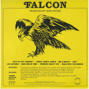FALCON released a 45 single 'Always Rock n Roll' / 'Looks Like I'm Leavin'. Released 'The FALCON' album collection of songs from Hamilton & Nanaimo. Released 45 single 'The Spirit of Christmas' and 'The Twelve Guitars of Christmas' Nov1/92. Also, video of 'The Twelve Guitars'. Released 'INVITATION' album of original Christian music in 2004 featuring musicians from Christ Community Church. June 2008 release of The FALCON/WALK INTO THE MIRROR compilation CD of previously released recordings on Rescue Records. 2009 newly formed GLEN FOSTER GROUP is an acoustic folk/rock trio playing original music and some tributes. New CD was anticipated for summer of 2009.