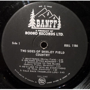 Throughout the 1960s, Shirley recorded a string of releases for the Rodeo/Banff and Melbourne labels — five singles in total between 1963 and 1969, alongside two full-length albums: The Two Sides of Shirley Field (Rodeo RBS-1186, 1963) and Yours Sincerely (Banff RBS-5309, 1969). Among her most collectible records is the 1965 Melbourne single “We’re Going Skiing” b/w “Ski Rock” (WG-3193), a rockabilly-inspired novelty cut that became a ski lodge favourite across Western Canada and remains a sought-after 45 among collectors today.