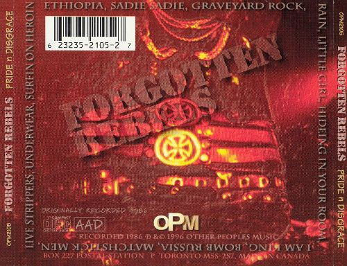 The Forgotten Rebels hail from Hamilton, Canada. The group got its start with a 1977 demo entitled Burning the Flag, which was followed with an independent EP 1978, Tomorrow Belongs to Us (both were later collected on a 1997 reissue titled after the latter). The original lineup featured vocalist Mickey DeSadist (b. Mickey Gerlecki), guitarist Tony Madelina, drummer Angela Madelina, and bassist Carl "Chris Suicide" Johnson, and like most of the Forgotten Rebels' lineups, it was short-lived, as new drummer Pete "Treason" Latimer joined in between recordings and left just as quickly.