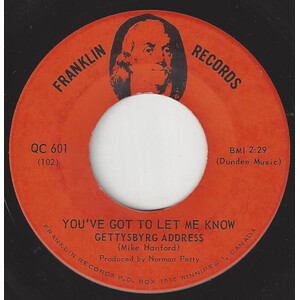 Gettysbyrg Address - Come Back to Me (Baby) b/w You've Got to Let Me Know