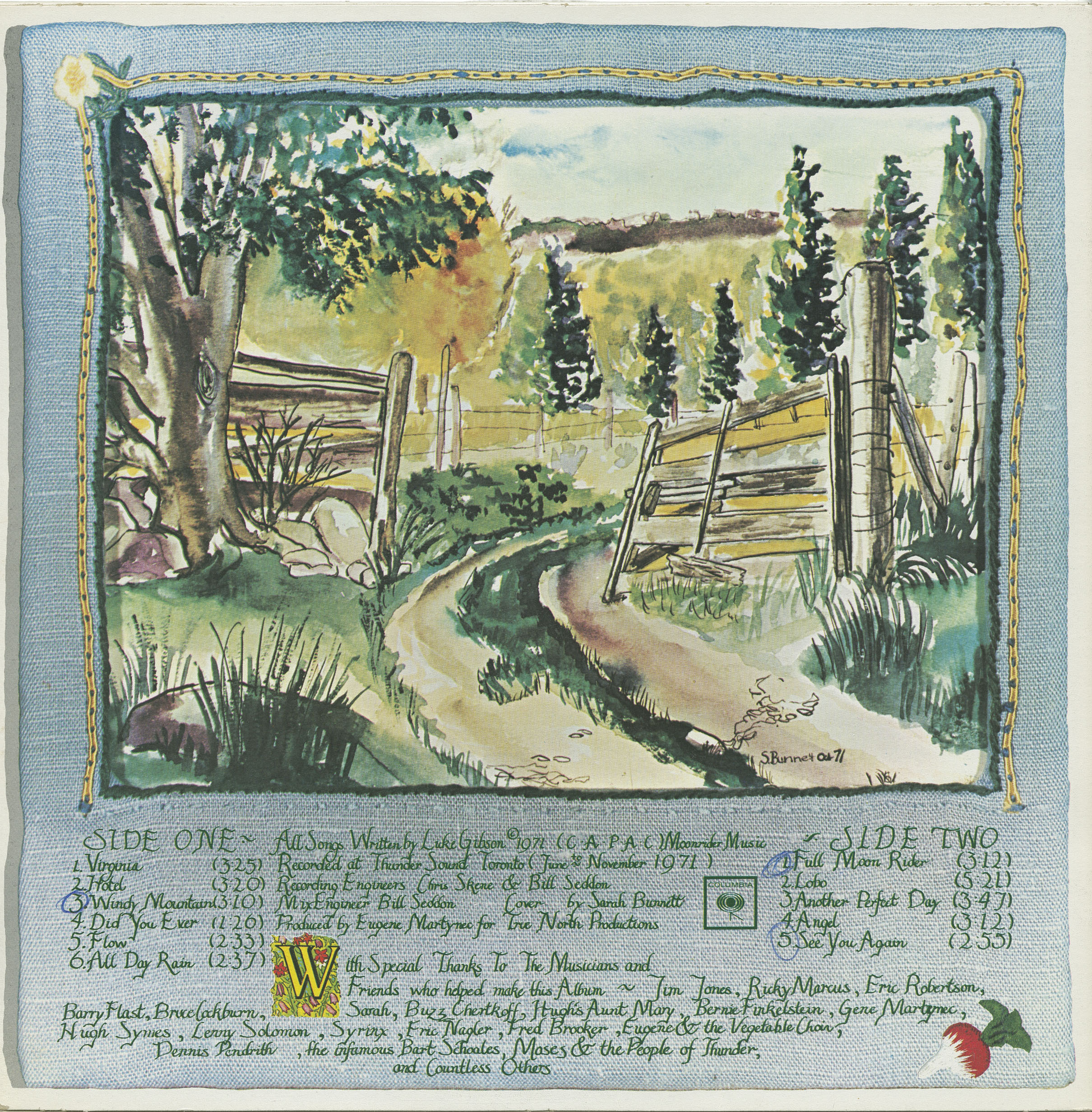 Gibson’s solo debut, Another Perfect Day (True North, 1971), produced by Gene Martynec, was a radical departure—lean, introspective, and rooted in country-folk. While it didn’t chart, the record has since gained cult status as one of Canada’s finest singer-songwriter albums of the era, featuring standout tracks like “Full Moon Rider,” “Angel,” and “All Day Rain.” A non-LP single, “Frozen in Time”, remains one of the era’s most haunting Canadian folk-psych recordings.