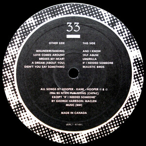Canadian pressing of the 1986 original release, is the acts first LP which shows a band unsure whether to follow R.E.M.'s folky lead or post-punk's dreamy abstraction. Fortunately, the jangly guitars and harmonies win out for a pleasing, though unspectacular, debut. Highlights include the single 'Misunderstanding', as well as 'Love Comes Around' and 'A Dream (About You)'.