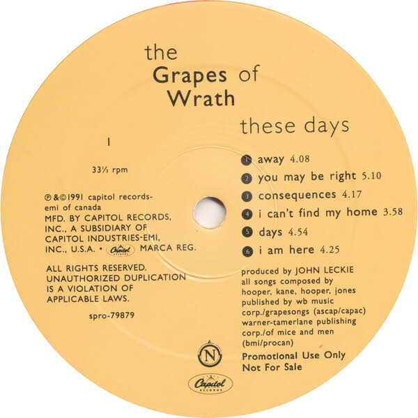 In 1992, the band released a VHS video collection entitled Those Days. The collection comprises all of their promotional videos, with the exception of "A Fishing Tale", since that video was released just after the release of this collection. It begins with the audience from a concert at Massey Hall in Toronto screaming in unison, "The Grapes of Wrath present Those Days". Between each video, there is rare footage of the band, some when they are children.