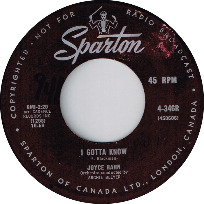 Hahn, Joyce - The Grass Was Greener b/w I Gotta Know
