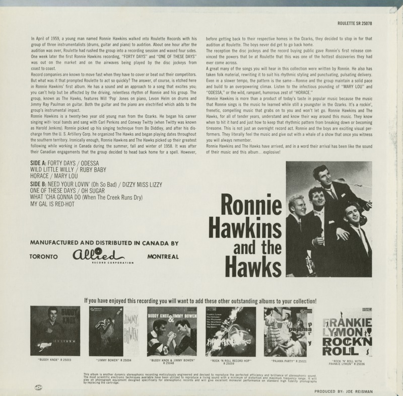 Hawkins began playing in local bars in 1953, with young Arkansan Levon Helm joining the fold about five years later. In 1959, Hawkins scored a deal with Roulette Records, leading that year to minor hits Forty Days and Mary Lou and an appearance on American Bandstand.