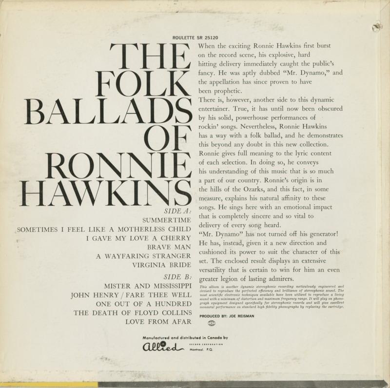 Folk music icon Sylvia Tyson summed up his contribution best: “There isn’t a Canadian musician or performer anywhere who doesn’t owe a debt of gratitude to Ronnie Hawkins,” she said, “because without him being who he was at the time, without his talent and effort and dedication to the cause of developing Canadians for stardom of their own, we probably wouldn’t be where we are today.”