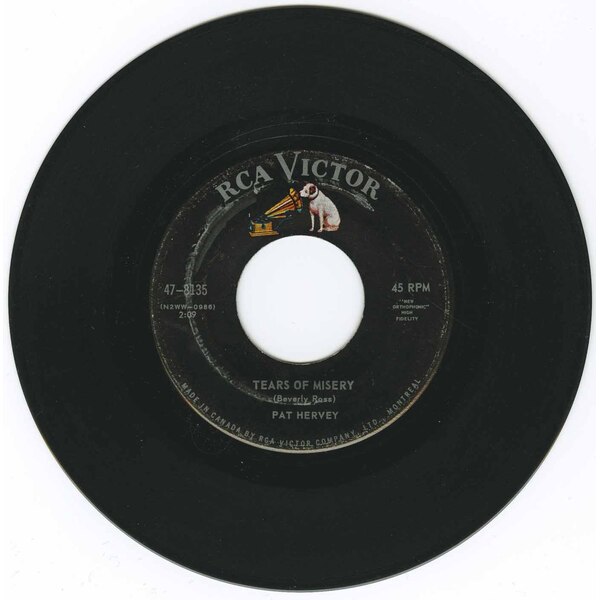 Tears of Misery was produced by Chet Atkins and won a pop spotlight pick for Pat Hervey in the U.S. Billboard publication. It was a hit record in Canada reaching number 11 on the CHUM chart in Toronto and even higher in some other Canadian cities like Calgary where it rose to number 2 ! Pat does a great job of Brother, Can You Spare A Dime which also appeared on the compilation album called Make-Believe Ballroom Time, Music of the 30's on the RCA Camden label.