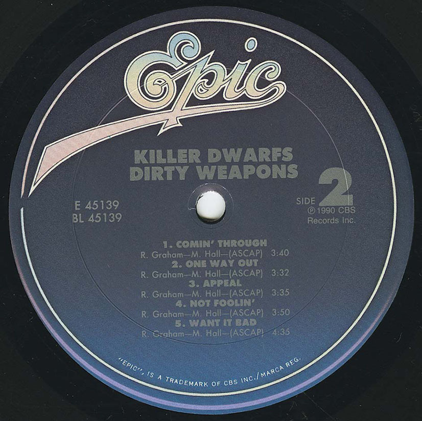 Killer Dwarfs had the makings of a big-time arena rock band, but headlining arenas was something the slick outfit never had the chance to do. A big commercial breakthrough eluded the Killer Dwarfs, whose pop-metal style was sort of Mötley Crüe meets Ratt meets Poison. Typical of the band's Epic output, Dirty Weapons isn't the most original album in the world and is far from earth-shattering, though it does contain some fairly catchy material -- most notably "Last Laugh," "All That We Dream," and "Not Foolin'." Why one of these songs didn't make the Killer Dwarfs successful is anyone's guess -- the album sounds like it was tailor-made for MTV and album-oriented rock radio of the early '90s. Perhaps it fell between the corporate cracks. Whatever went wrong, Killer Dwarfs barely made a dent commercially.