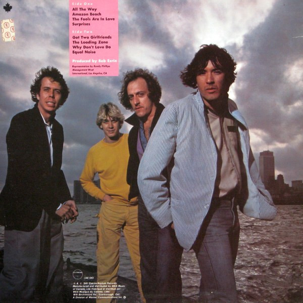 Then there is the story behind the album’s artwork. The band thought it might be fun to have a cartoon like cover with the Amazon idea featured showing some women on a body of water with a cityscape in the background. The proofs of this were following the band as they were on the road and some of the early versions were really bad and missed the point entirely. The back cover shot of the band had been taken on a freezing cold day in June on the Toronto waterfront with great care being used to frame the shot so that the eyesore C.N. Tower was nowhere to be seen. It is not a bad looking city if you remove the tower but it is hard to do. The interior sleeve shot was taken at Dave and Zero’s apartment.