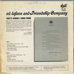 Lafave, Ed & Friendship company - That’s Where I Come From: A Centennial Tribute to British Columbia