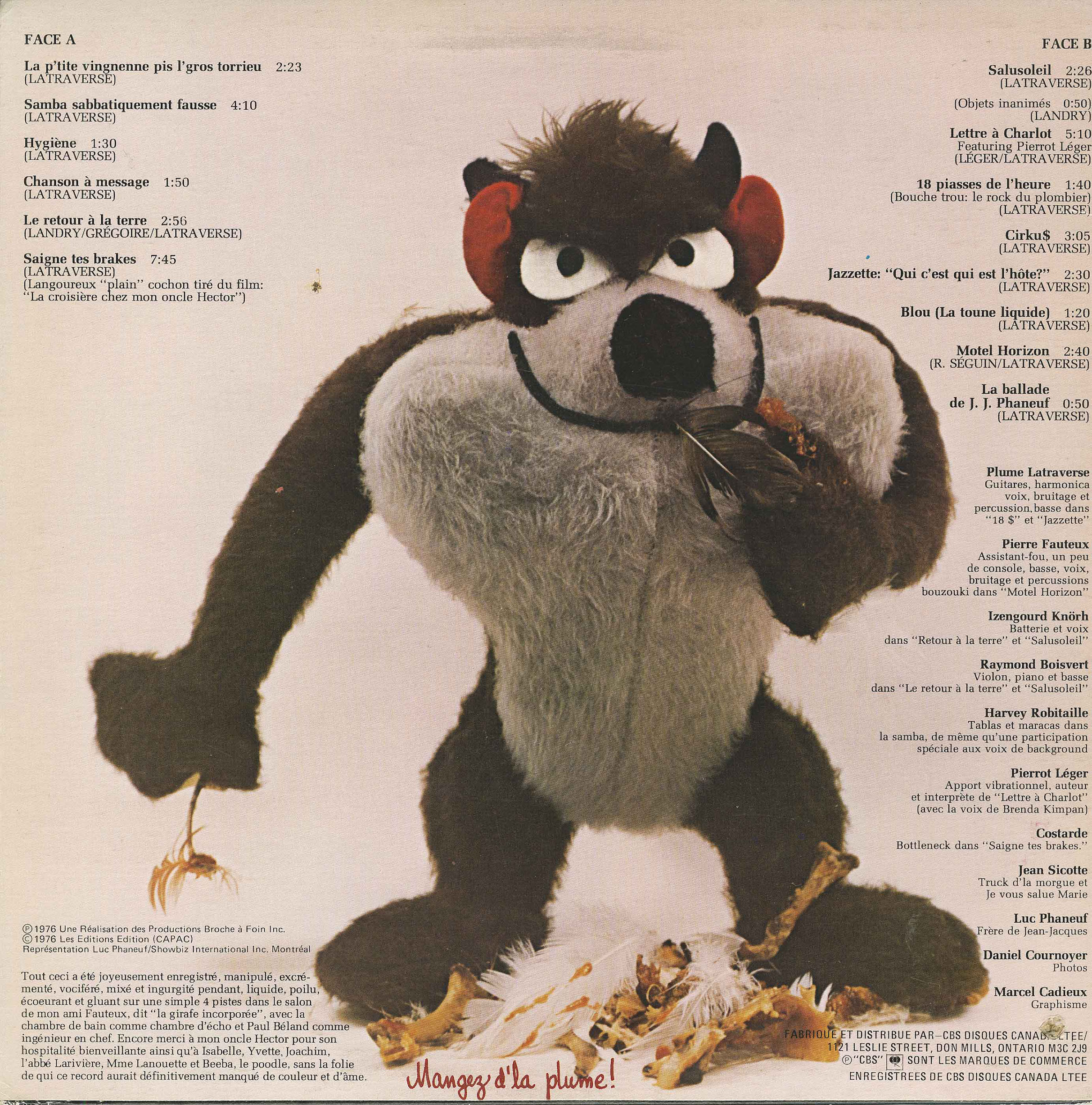 Striking out solo in 1976, Plume quickly established himself as a singular force in the Québécois music scene. Blending blues, folk, Latin, rock ’n’ roll, chanson, and spoken word, his early albums like Plume Pou Digne (1974) and Le Vieux Show Son Sale (1975) became underground landmarks. Songs like “Bobépine,” “Le Mal du pays,” and “Jonquière” struck a nerve with a generation disillusioned by mainstream media and politics. With his tangled beard, raspy delivery, and knack for vivid characters and street poetry, Plume became the voice of the anti-hero: the hitchhiker, the bum, the loner in the tavern who sees through the bullshit.