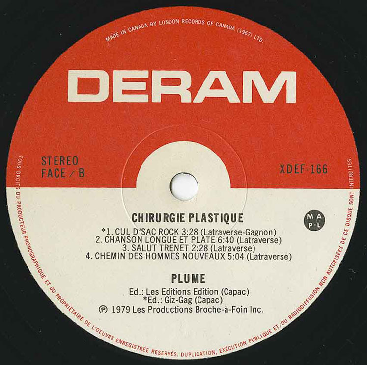 Written by Plume Latraverse except "Cul d’sac rock" written by Gaston Gagnon, Plume Latraverse