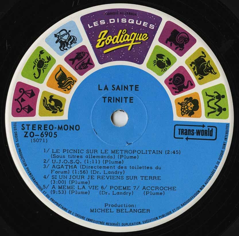 This is where Plume’s trip really begins—a rare slab of freak-folk, psych, and spoken-word surrealism straight outta Montréal. Triniterre swings from gritty barroom blues to cosmic acoustic wanderings, laced with political jabs, deadpan humour, and oddball instrumentation. It’s raw, poetic, and totally off the rails. A cult cornerstone of Quebec’s underground scene—original copies are now worth a small fortune.
