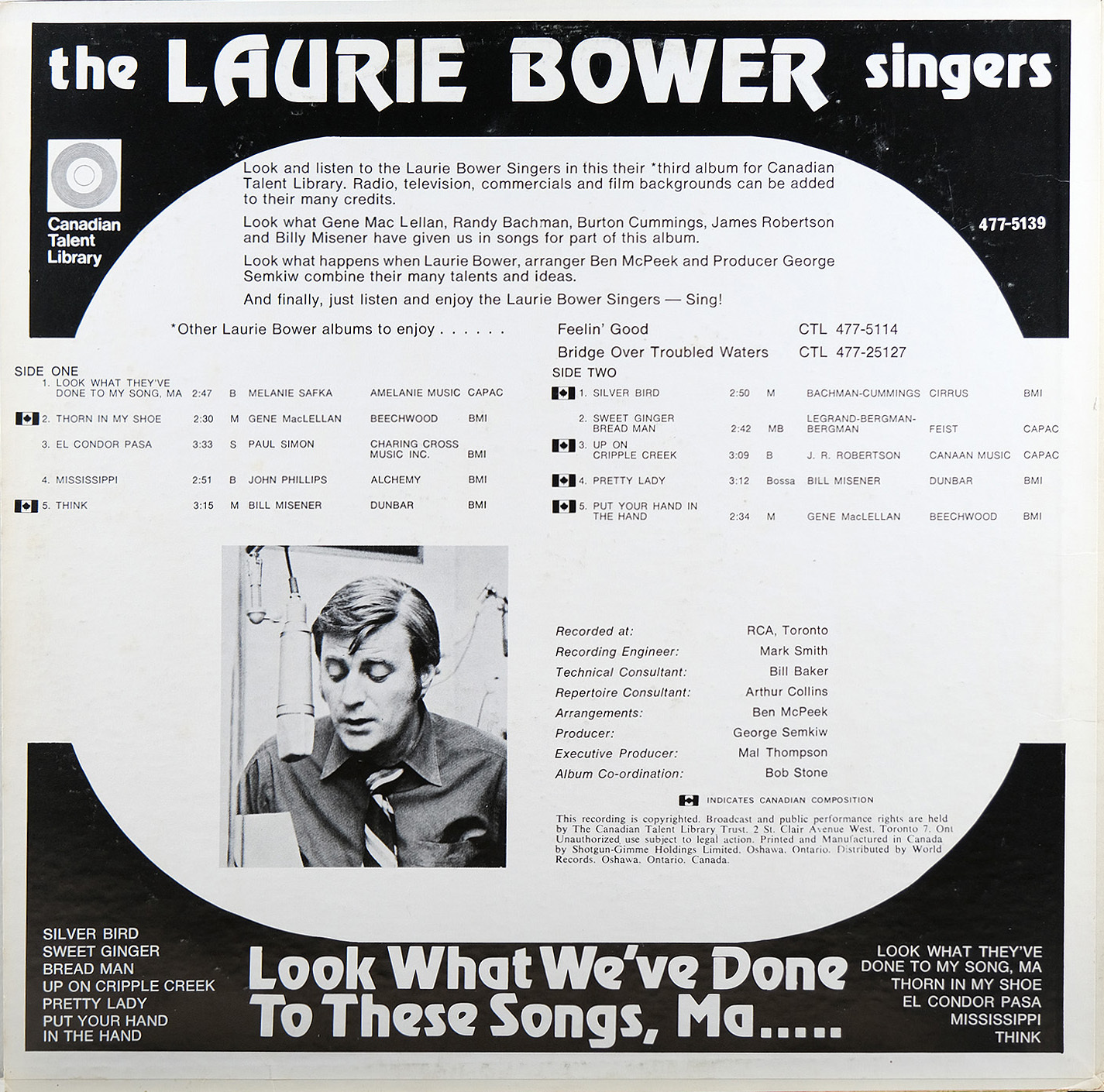 The Laurie Bower Singers came together in 1969, first as a compact vocal quintet and then gradually expanding into a rotating ensemble of Toronto’s finest session singers. At a time when the CBC and the Canadian Talent Library were commissioning music to fill airwaves with homegrown content, Bower’s group was perfectly placed. They were versatile, reliable, and fast. The group could cut a full album of covers in a matter of days, record a pair of jingles in the morning, and back a jazz orchestra on television the same evening.