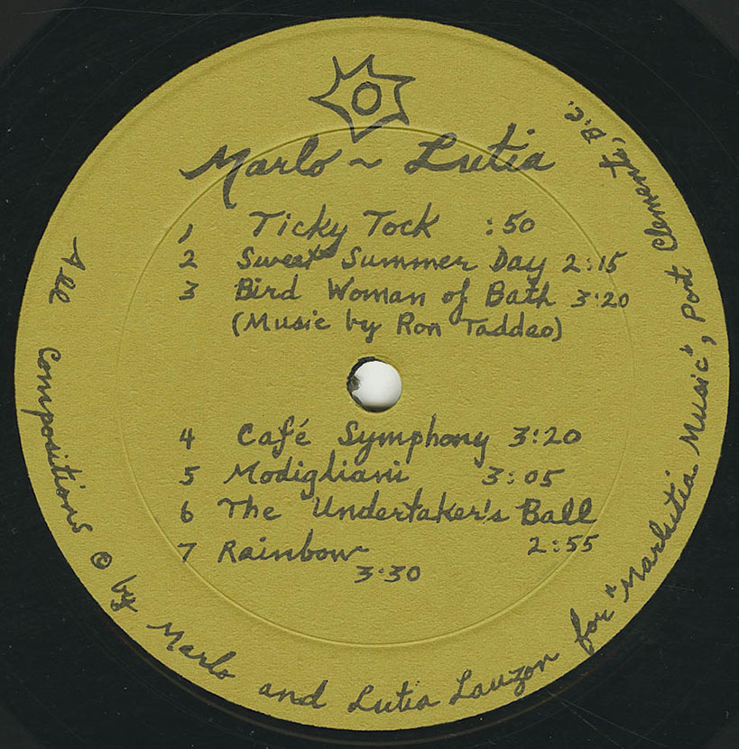 Marlo Lutia Lauzon were the folk duo of Paul Lauzon and Lutia Lauzon who together recorded 2 lp's and a few 45's.