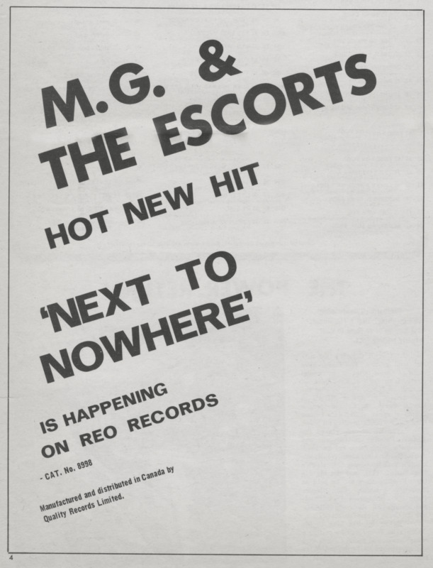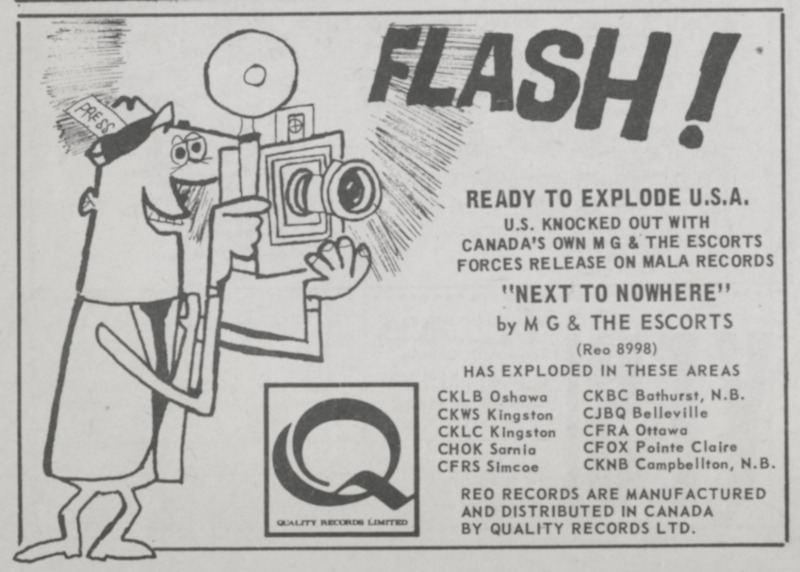 Despite receiving promotion from Quality Records and even a U.S. release on Mala Records, the single would be their last. That September, the band played a major performance at Expo 67’s “Garden of Stars”, sharing the stage with some of the biggest names in music. But within months, M.G. & The Escorts were no more.