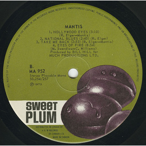 The self-titled debut album, Mantis, was released in December 1973 on Sweet Plum Records. While initial recordings wrapped up in November, the band had originally intended to include a cover of Suzi Quatro’s "Can The Can", but ultimately decided to focus on original material.