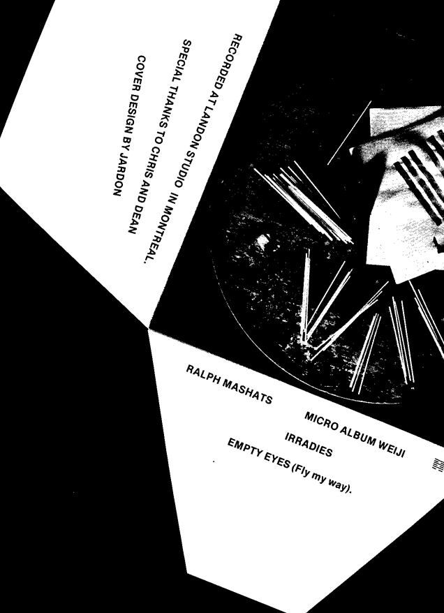 Mashats followed with Micro Album Weiji, a 7" EP released on DG Records in 1981. Its lead track “Irradiés” was recorded on a TEAC 4-track cassette machine, combining minimal synth textures, haunting French vocals, and lo-fi experimentation. It captured a raw, atmospheric energy emblematic of the early electro underground. A follow-up 7", “Empty Eyes / Fly My Way,” layered in post-punk melancholy and melodic fragility, making these singles rare but sought-after examples of independent francophone synth music.