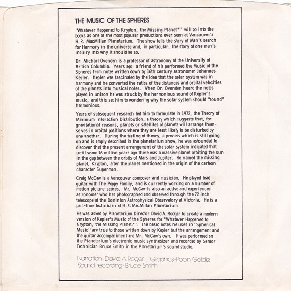 McCaw, Craig - The Music of the Spheres (picture sleeve)