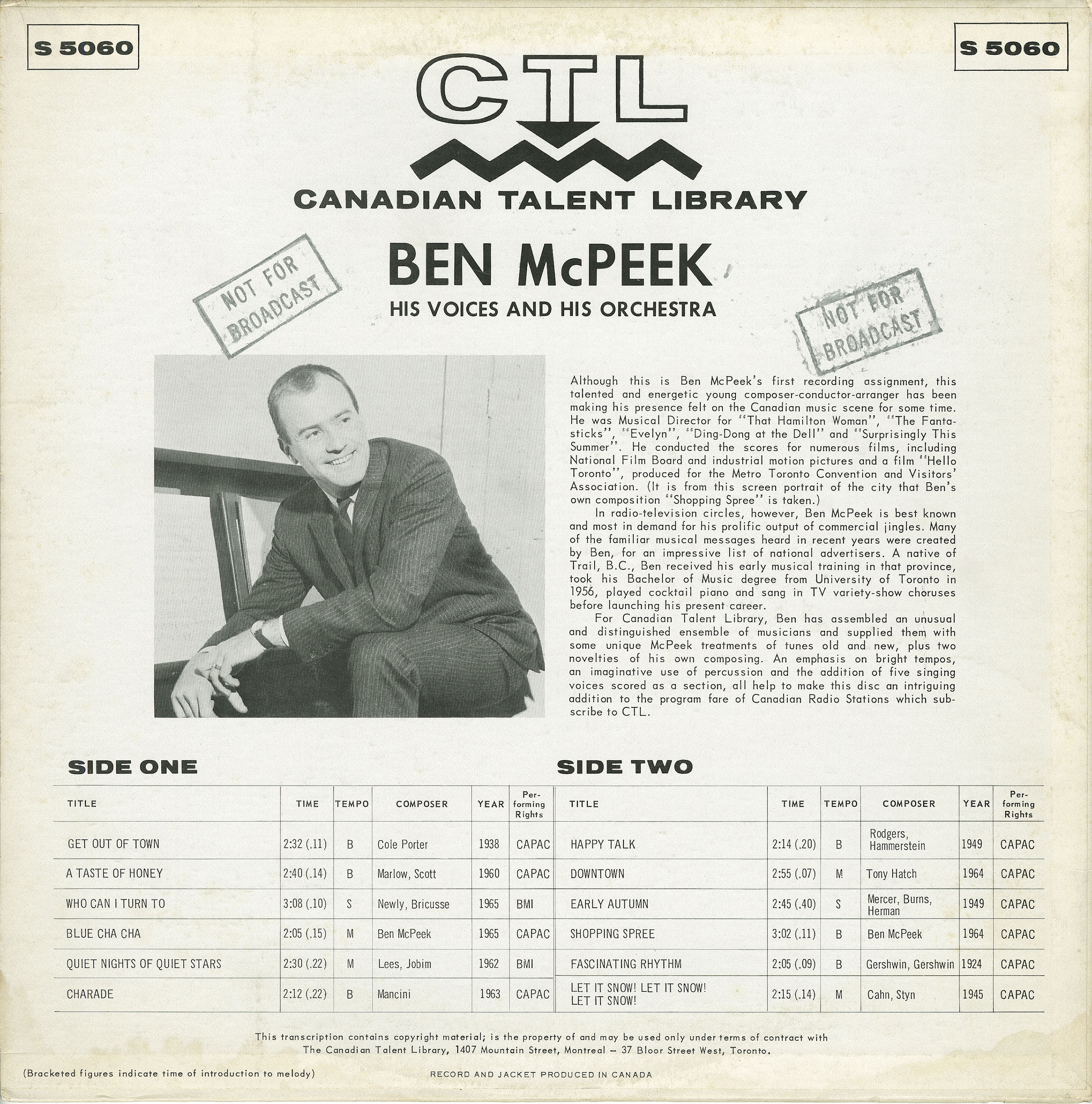 Label: Canadian Talent Library CTL 5060