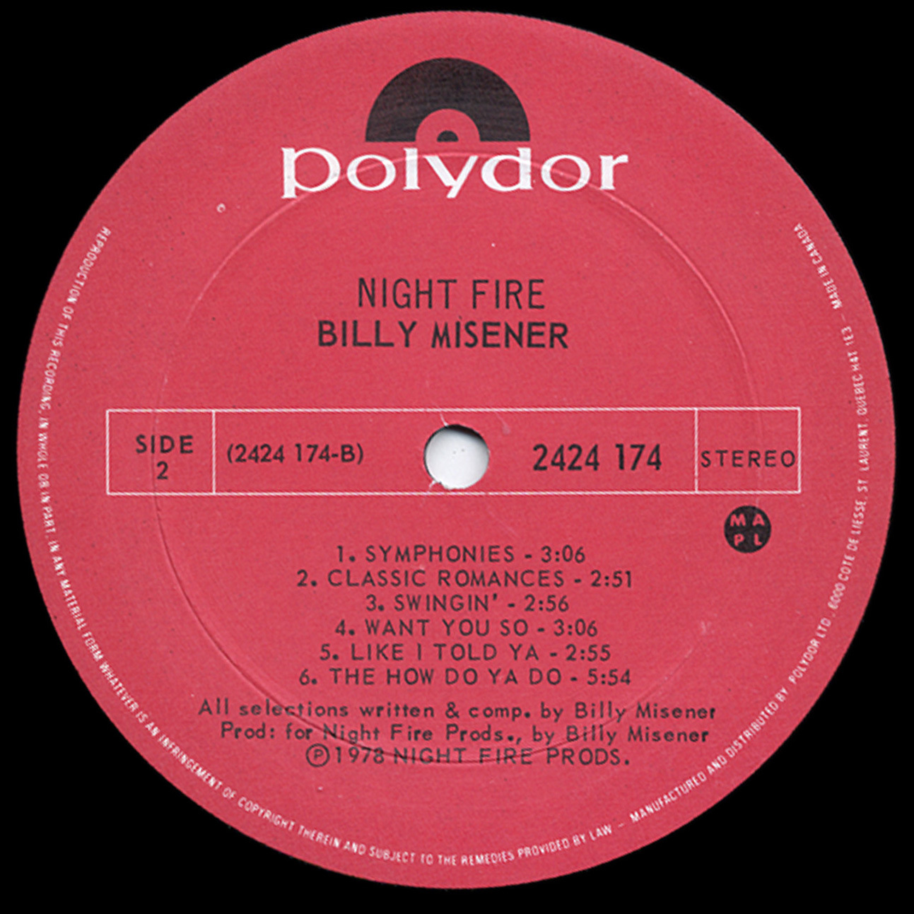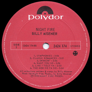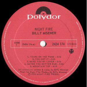 His most complete artistic statement came in 1978 with Night Fire, issued under the name Billy Misener by Polydor Canada. Blending smooth rock, soul-tinged balladry, and polished adult contemporary pop, the album featured standout tracks like “Maybe You Better Run,” which charted on CHUM FM’s playlist. Though not a blockbuster, the album was critically well-regarded and has since gained cult status among collectors of 1970s Canadian AOR and soft rock.