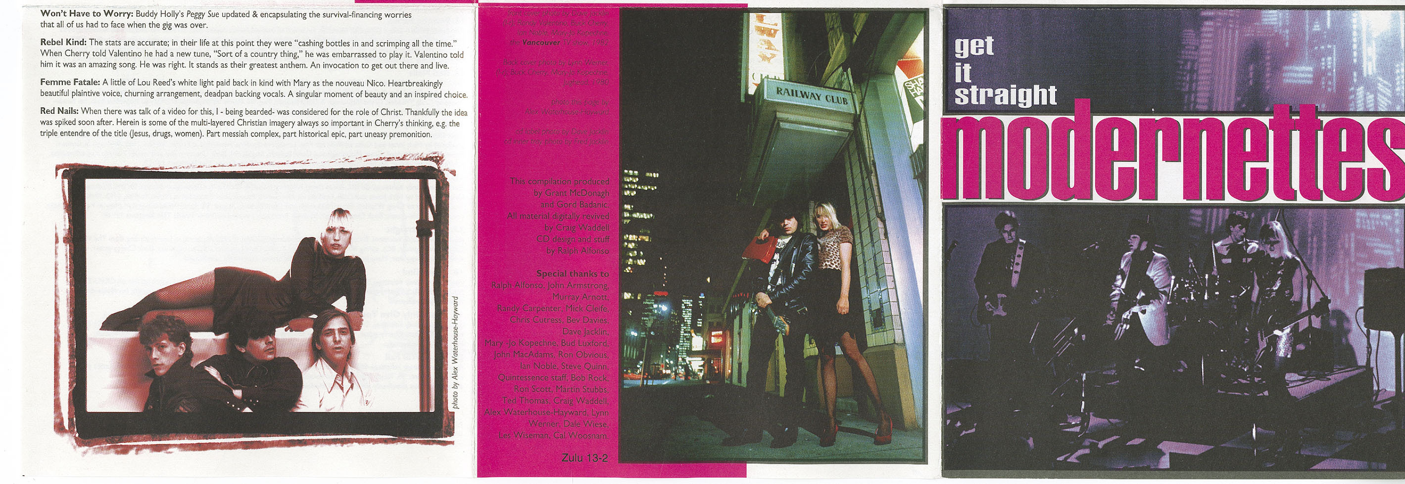 Forming in 1980, The Modernettes were a Canadian punk band from Vancouver. The band were a three piece, John "Buck Cherry" Armstrong was on guitar/vocals, Mary Jo Kopechne covered bass/vocals, and John "Jughead" McAdams played drums and sang as well. The band has been described commonly by critics as a mix between The Velvets and Ramones. The band had a sound that was a mix of pop and punk way before the days of modern pop-punk bands such as Sum 41; the band also was influenced by other bands, like The Who. The band was not like other Canadian punk acts like D.O.A. or The Subhumans, they were different.