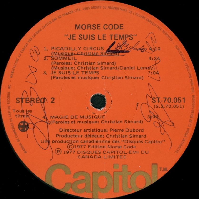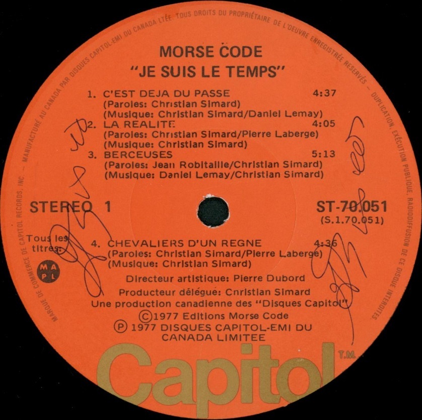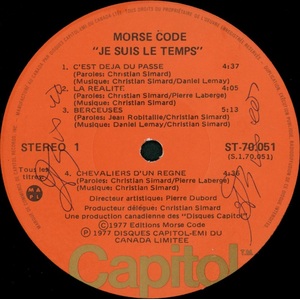 For this album , their record company allowed to send Morse Code to Britain to record it and one can hear the difference , not in the production , but in the writing . The singing is still in french but the the music veers of to Fruup , BJH, ATTOT Genesis . Another change is that there are no major lengthy composition like the full-blown Procreation or La Marche des Hommes. The longest (and worthiest) track is the title-track, which clocks in around 7:30 but it does have a smaller number linked to it. The rest of the songs glide on smoothly and are of the usual MC caliber/standard. Un-fortunately, one cannot help to think that the opening track was premonitory as this was to be their last album, as Capitol was to find that their expectation (sales-wise) might be too ambitious and the Disco Wave was to strike Québec like a tsunami.