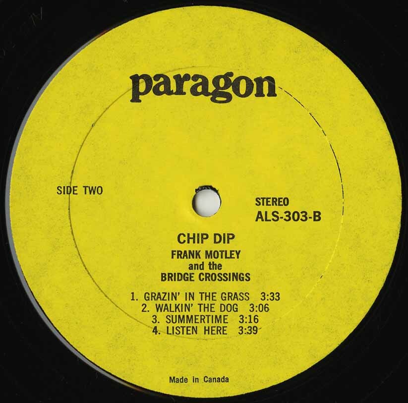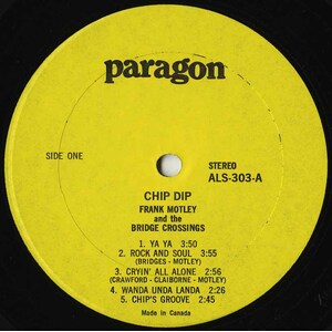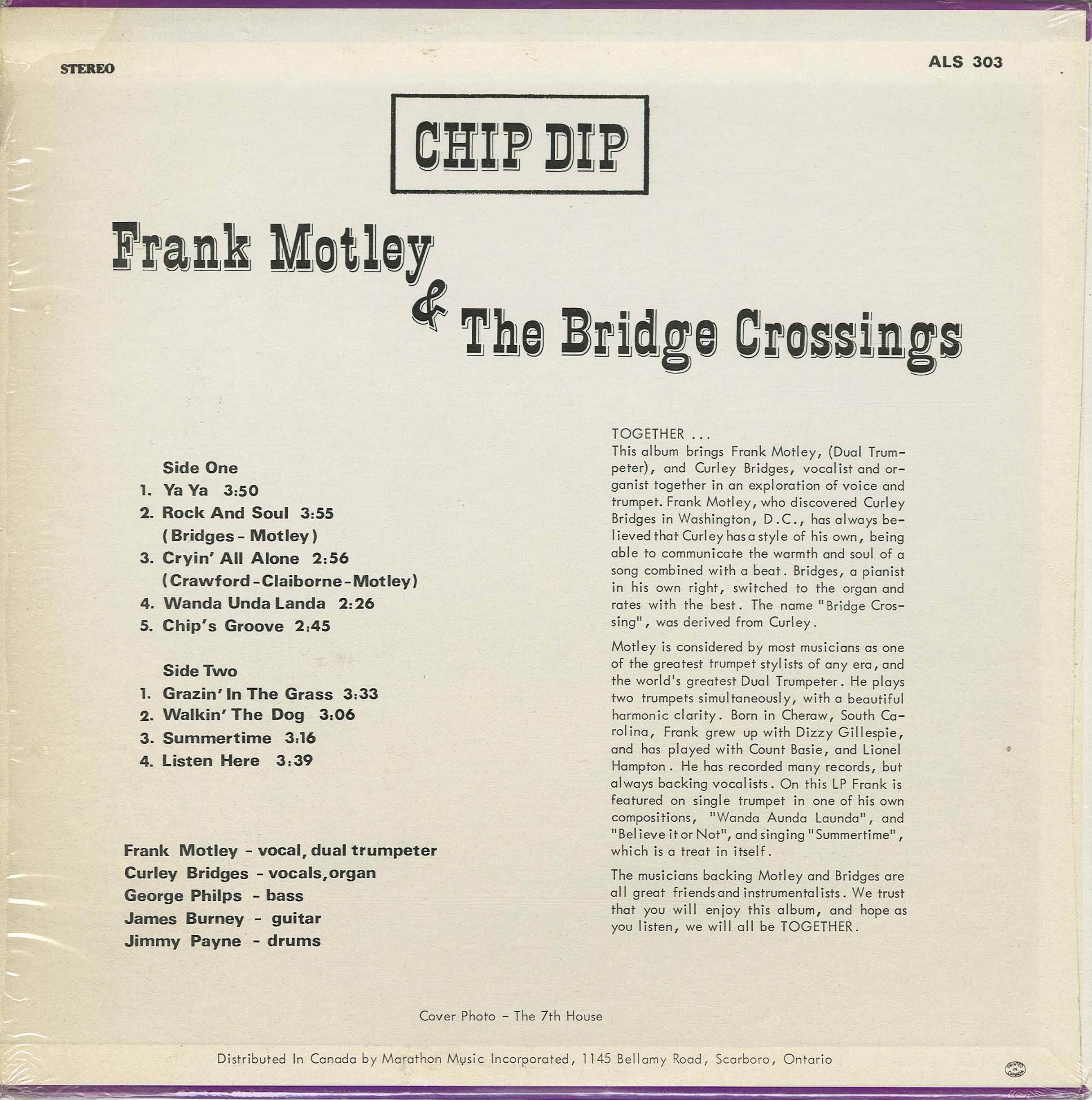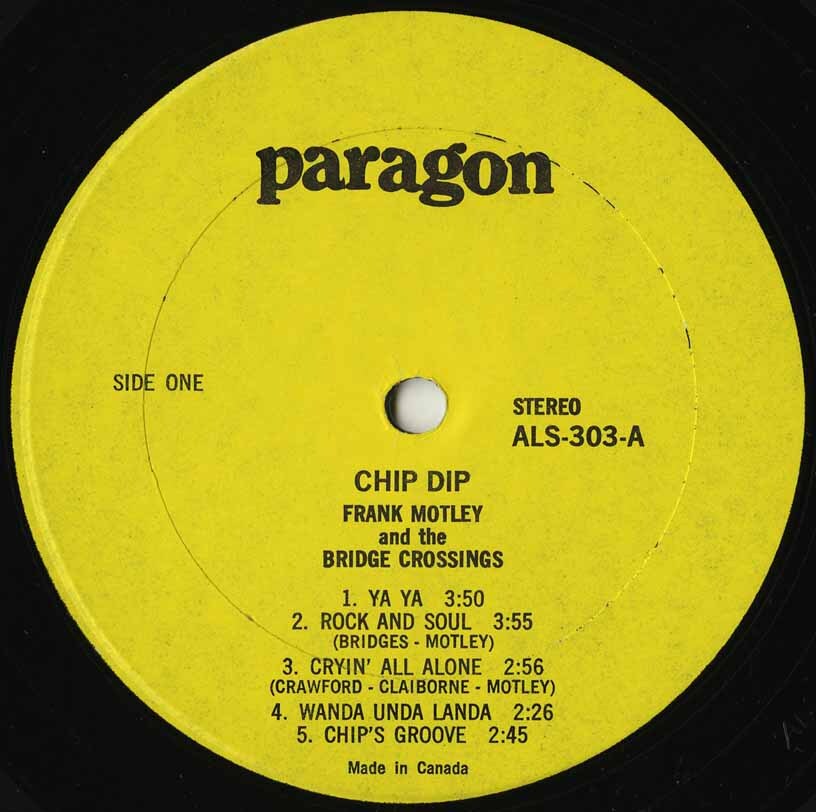 Motley’s final full-length LP was Chip Dip (Paragon ALS‑303, 1972), released under the name Frank Motley & The Bridge Crossings. It saw him reuniting with Curley Bridges for a tighter, funk-driven studio album that marked the last great chapter of his discography.