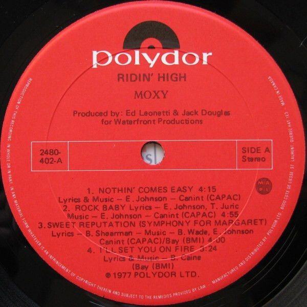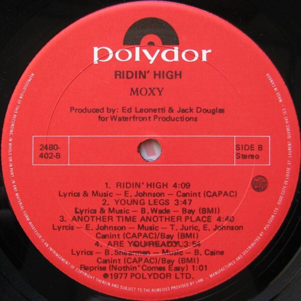 Ridin' High is the third album by the Canadian hard rock band Moxy, released in 1977. The record got good reviews and got the band nominated for a Juno Award (Canada's Grammy) in 1977 for Most Promising Group of the Year. The album produced two Texas hit songs "Are You Ready", and "Ridin' High", as for Canada the album was considered too hard/heavy for Canadian radio at the time and consequently only the slowest paced song "Another Time Another Place" received any airplay in the band's home country. The album still sold well in Canada and especially in Southern USA because of strong live appearances that included shows with AC/DC and Trooper.