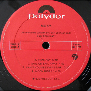 Moxy was formed in 1974 by Buzz Shearman from the ashes of his previous act, Leigh Ashford. The same year the band was formed it was signed to Polydor records in Canada, mainly due to the popularity and success of Leigh Ashford and Buzz Shearman's reputation. The band's first album was recorded in California in only two weeks with co-producer Mark Smith, and as luck would have it, guitarist Tommy Bolin was recording next door. Bolin was so impressed with Moxy that he added some guitar work to the LP. After recording the album simply titled Moxy, the band headed back to Toronto and enlisted guitarist Buddy Caine to fill in the guitar parts that Bolin had added to the album. The debut album originally released in 1975 is a powerhouse of hard rock tunes; it was picked up by many radio stations in the U.S.A. and was a number one requested album in Texas. The success of the album lead to a contract with the Mercury Records label in the U.S. and a national distribution deal.