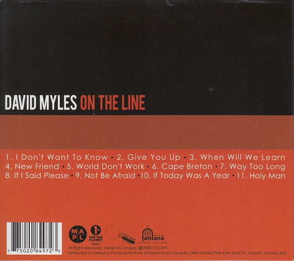 The title speaks volumes. David Myles is a fresh force on the Canadian entertainment landscape who has dared to put it all on the line with this independent release ... creativity, vocal versatility and musical dexterity. The cd is a powerful and stylish blend of jazz, blues, gospel, pop and folk influences. His trademark enthusiasm and likeability shine through on this disk.
