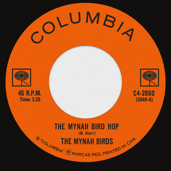 Under Kerr’s guidance, the group recorded their first Canadian single in early 1965 for Columbia Records: “The Mynah Bird Hop” backed with “The Mynah Bird Song” (C4-2660). Written by Kerr’s brother Ben Kerr, the record featured Jimmy Livingston (vocals), Frank Arnel (guitar), and Goldy McJohn (organ), and included contributions from several players who floated in and out of the lineup. Though a commercial failure, it marked Rick James’s first official studio release.