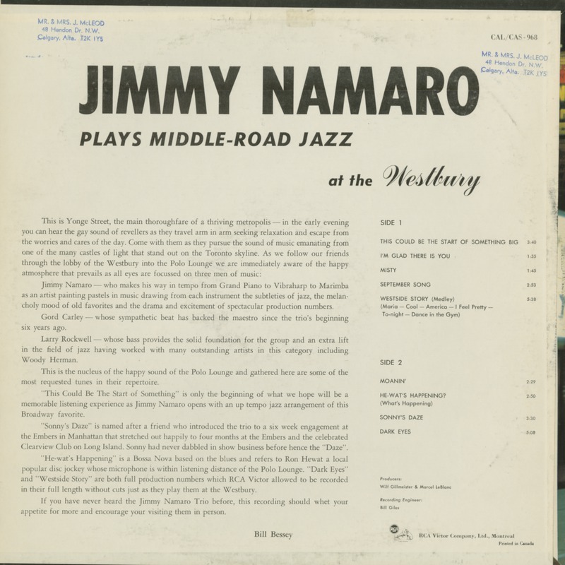 Namaro, Jimmy - Plays Middle Road Jazz at the Westbury