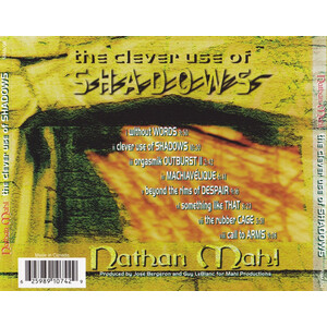 A totally amazing album from a band I've never heard of before, that is surprising, especially since this band was formed back in the end of 1980. My first thought was that this was a release by someone whose name was NATHAN MAHL, but it's actually a band. They are playing mostly instrumental melodic symphonic progressive rock with some avant-garde, Canterbury, fusion and jazz elements. The vocals as well as the musical skills and arrangements are irreproachable. This album has it all: complex mood and tempo changes, intricate instrumental passages and much more. The prominent use of keyboards, especially Fender Rhodes and Hammond is very good, and sometimes it's reminiscent to Keith EMERSON (EMERSON, LAKE & PALMER) and Rick WAKEMAN (YES). Their music is 70's oriented with reminiscences to EMERSON, LAKE & PALMER, HAPPY THE MAN, IQ, GENTLE GIANT, KANSAS, SPOCK'S BEARD, UK, YES and FRANK ZAPPA, not entirely but bits and pieces from each band. The vocals are reminiscent to Eric Woolfson (The ALAN PARSONS PROJECT) and the guitar playing sometimes reminds of Robert FRIPP and Steve HACKETT. The highlights are the opening "Without Words", the title track "Clever Use of Shadows", "Orgasmik Outburst II", "Machiavélique", "The Rubber Cage" that makes you think of FRANK ZAPPA and the final track "Call To Arms". Maybe I shouldn't point out any highlights, as all of them are masterpieces in their own right. If you think that this wasn't enough I can add that the cover is absolutely fabulous although it's only 4 pages long. The front cover is very beautiful. The production is also faultless so actually there isn't anything to complain about. This album is definitely recommended to all fans of melodic progressive rock. This is one of the best releases of 1999, and it has found its way to my list of unforgettable albums from the 90's. What can I say more than go out and get it!