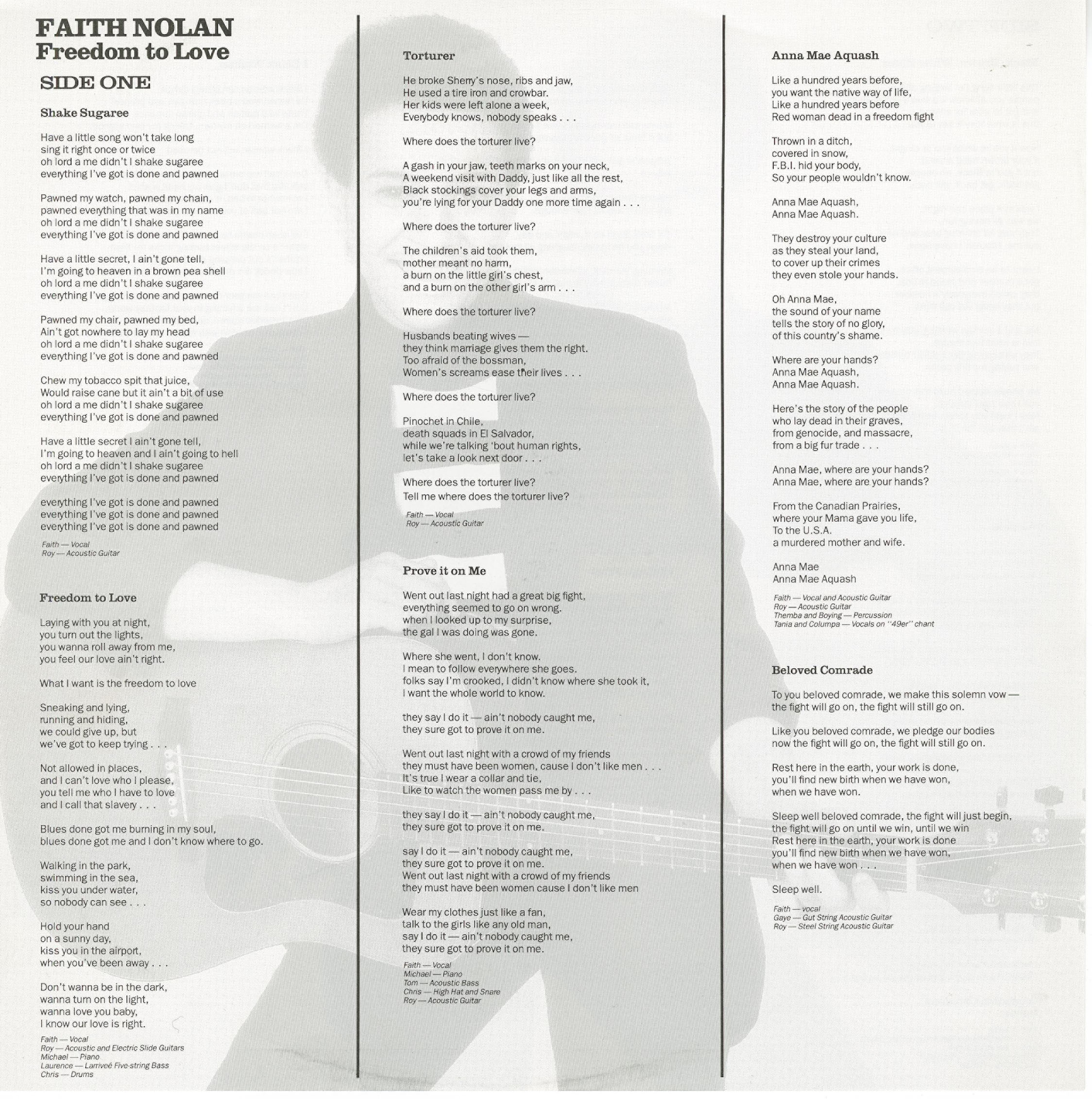 Faith Nolan: vocals, guitar, foot tambourine