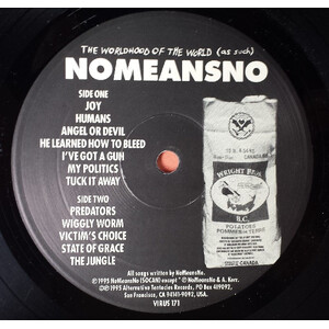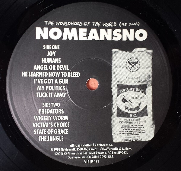I've been following Victoria's NoMeansNo since the late 80's. The Day Everything Became Isolated and Destroyed was one of the first CDs I ever bought, and it's still one of my favourite albums ever. The followup, Wrong, was punkier, and was cool, too, but then guitarist Andy Kerr left the band. Subsequent (Wright brothers only) discs, such as 0+2=1, well, sucked. 1993 brought Why Do They Call Me Mr. Happy?, which was ok, but nothing to get excited about. Finally, though, last fall The Worldhood of the World (as such) appeared, and it is something to get excited about!