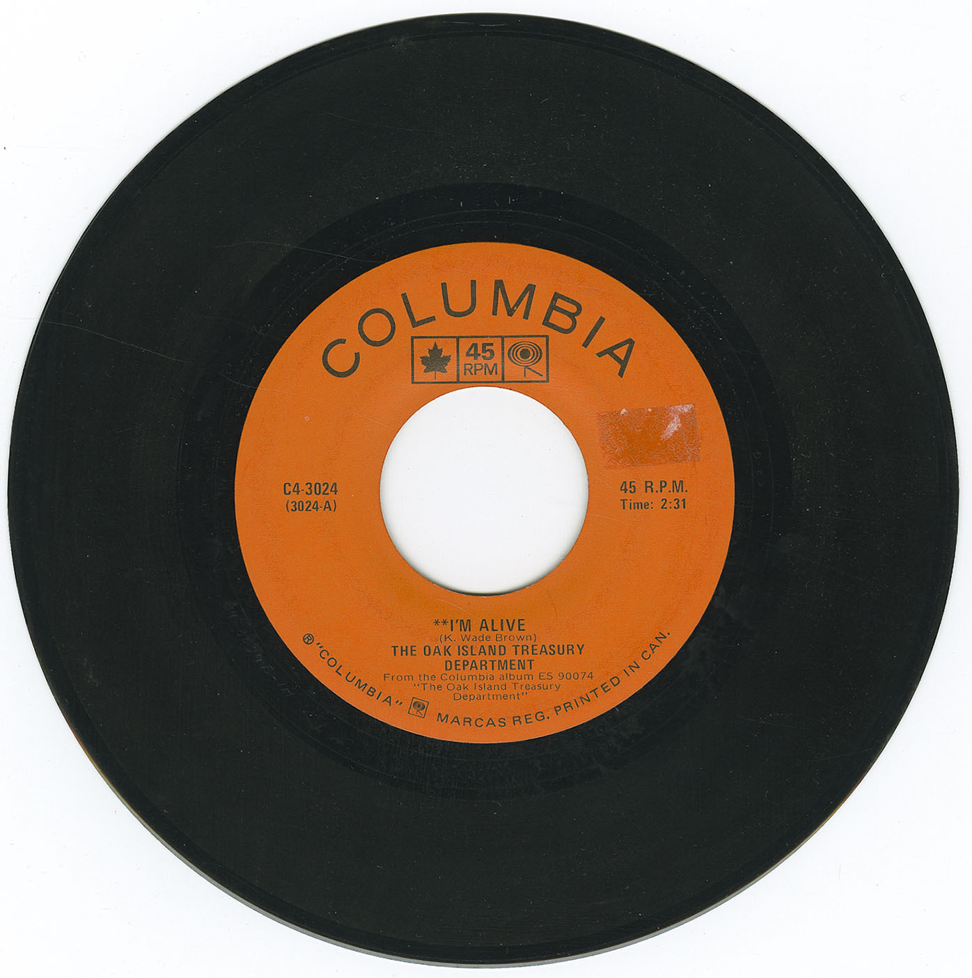 Oak Island Treasury Department - Glory Glory b/w I'm Alive