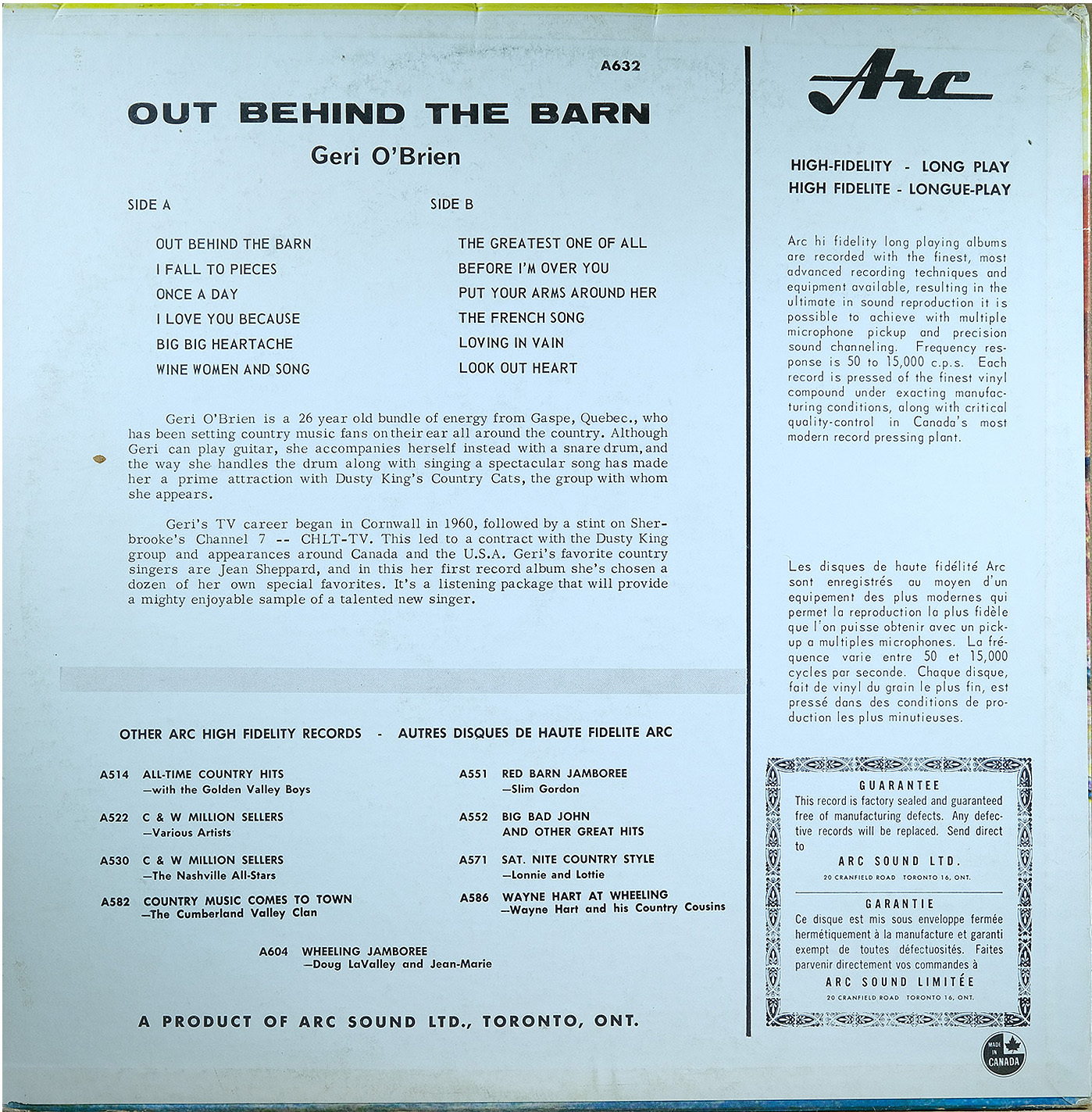 Country & Western, 1960's, Canadian Women in Song, Quebec, Arc Records