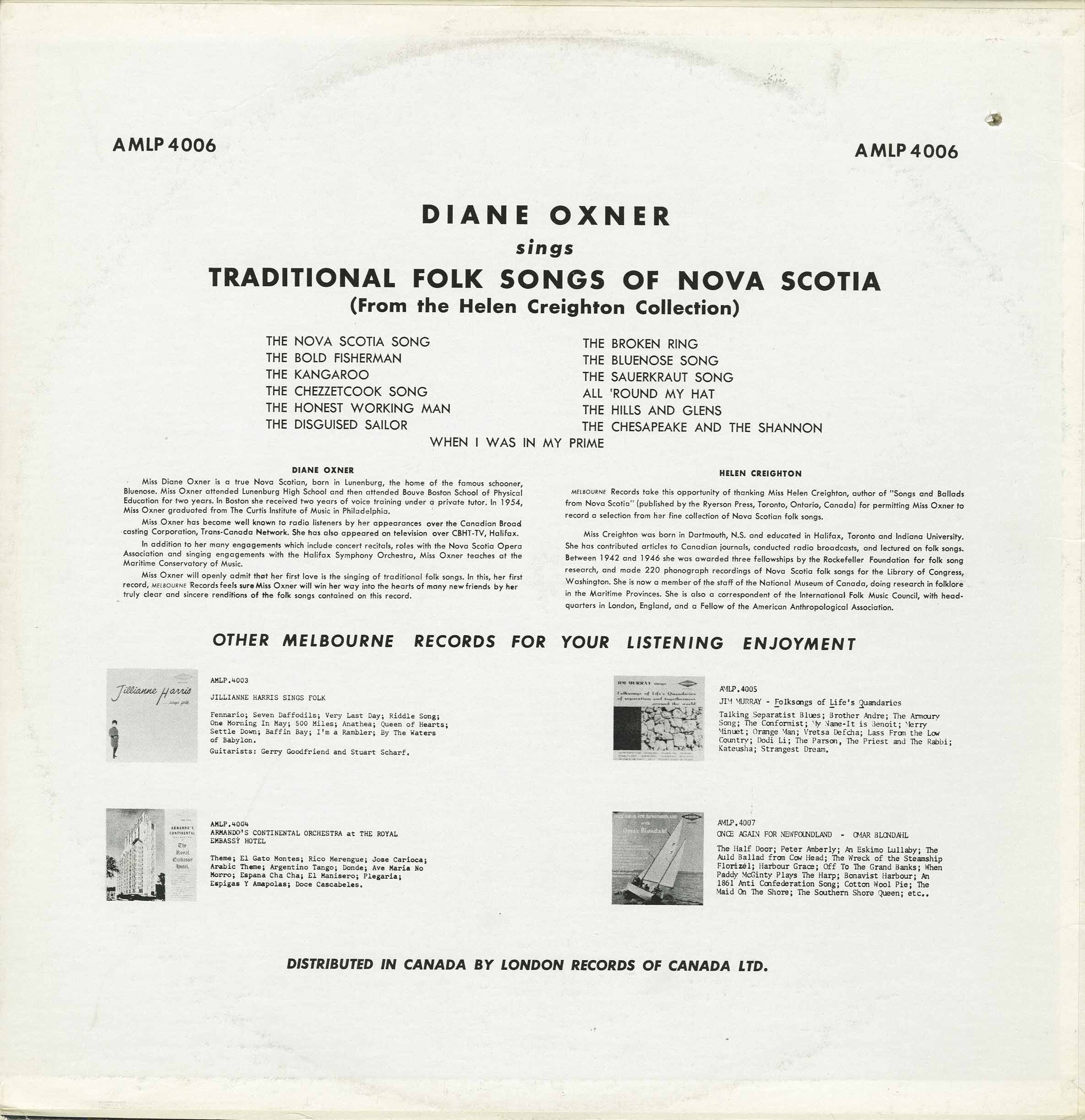 Oxner, Diane - Sings the Helen Creighton Collection of Traditional Folk Songs of Nova Scotia