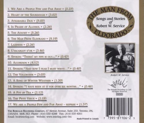 This recording is a masterpiece created by singer, songwriter, and storyteller David Parry, from the writings of Canadian poet Robert Service. Following a narrative shape inspired by Service himself, Parry leads us through the many phases of Robert Service's life, from the poignant and poetic to the outrageous and gregarious. The Northern stories for which Service is most famous are well represented here, along with work from his Paris bohemian days, World War I experiences and much else. Many of the poems are set to tunes for the first time, with melodies that echo turn of the century music hall and British folk traditions. Songs and poems are woven together into a seamless whole, for a wonderful theatrical and musical experience.