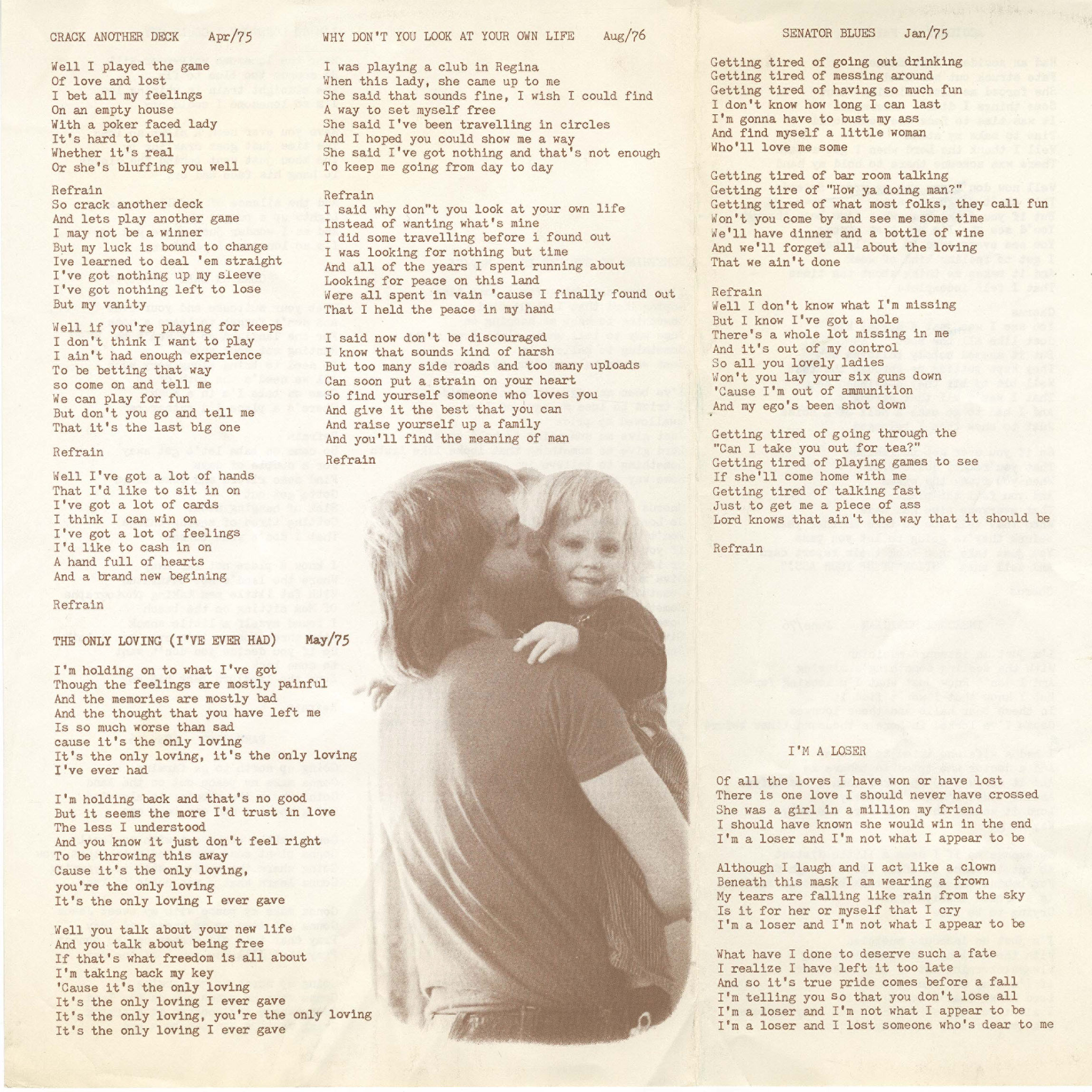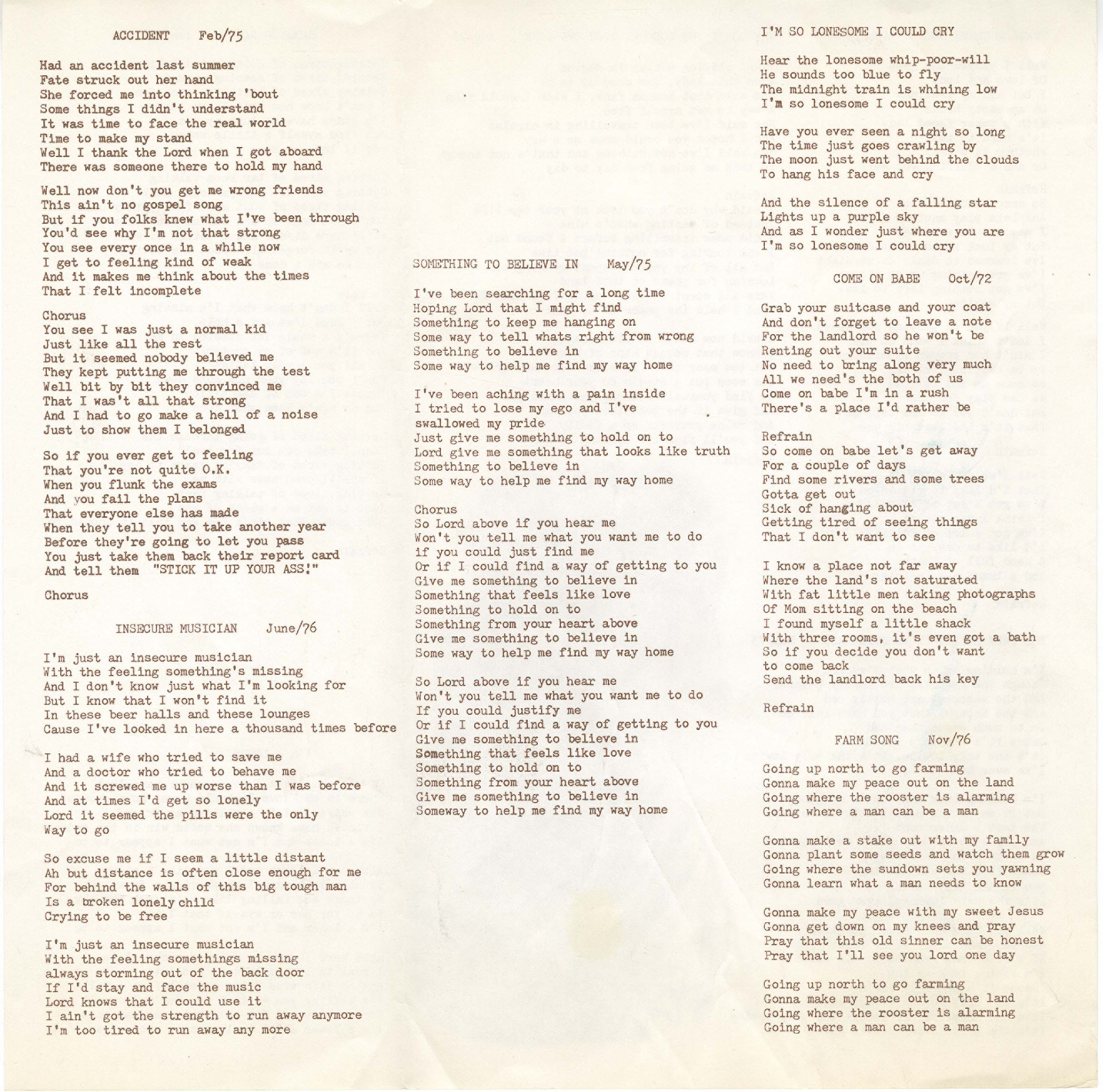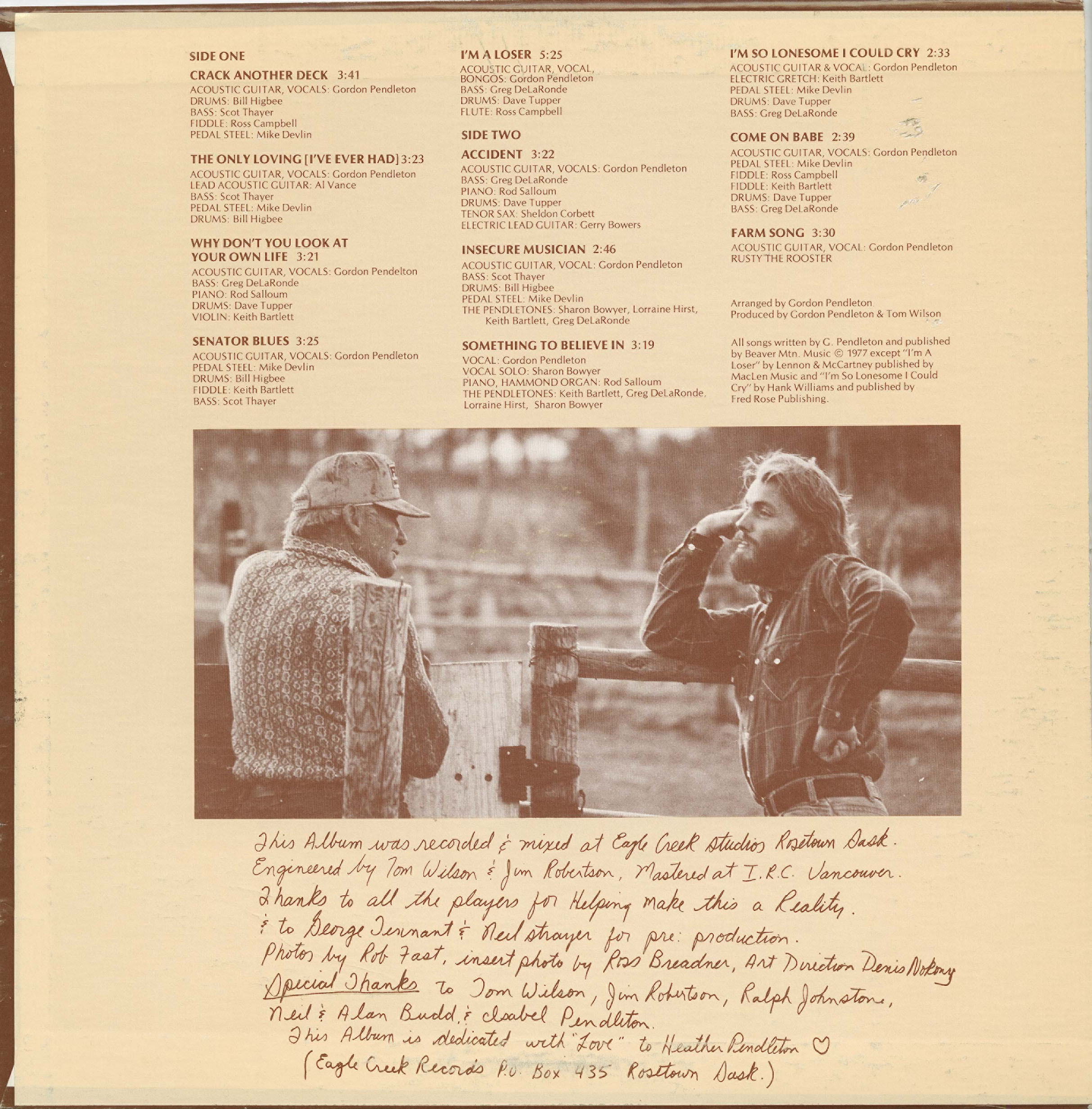 All Gordon Pendleton songs written between 1975-1976 (except "I'm a Loser", by Lennon & McCartney and "I'm So Lonesome I Could Cry", by Hank Williams)
