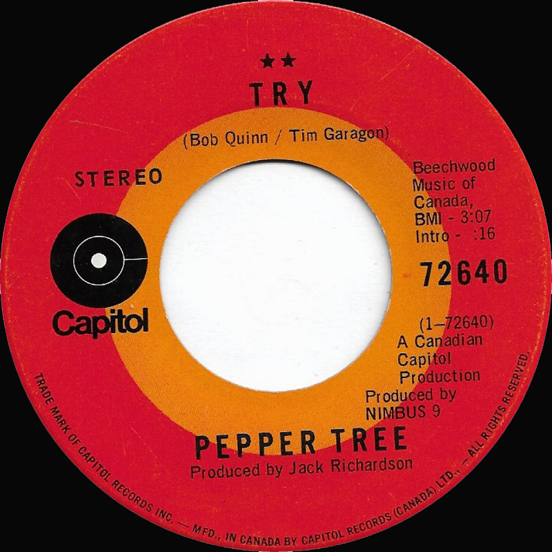 “‘Try’ introduces a new group. Besides those mentioned, Jim White plays lead guitar and the bass player is Chris Brockway. ‘Pepper Tree,’ notes Legault, is ‘a completely reorganized, re-inspired and revitalized group.’”