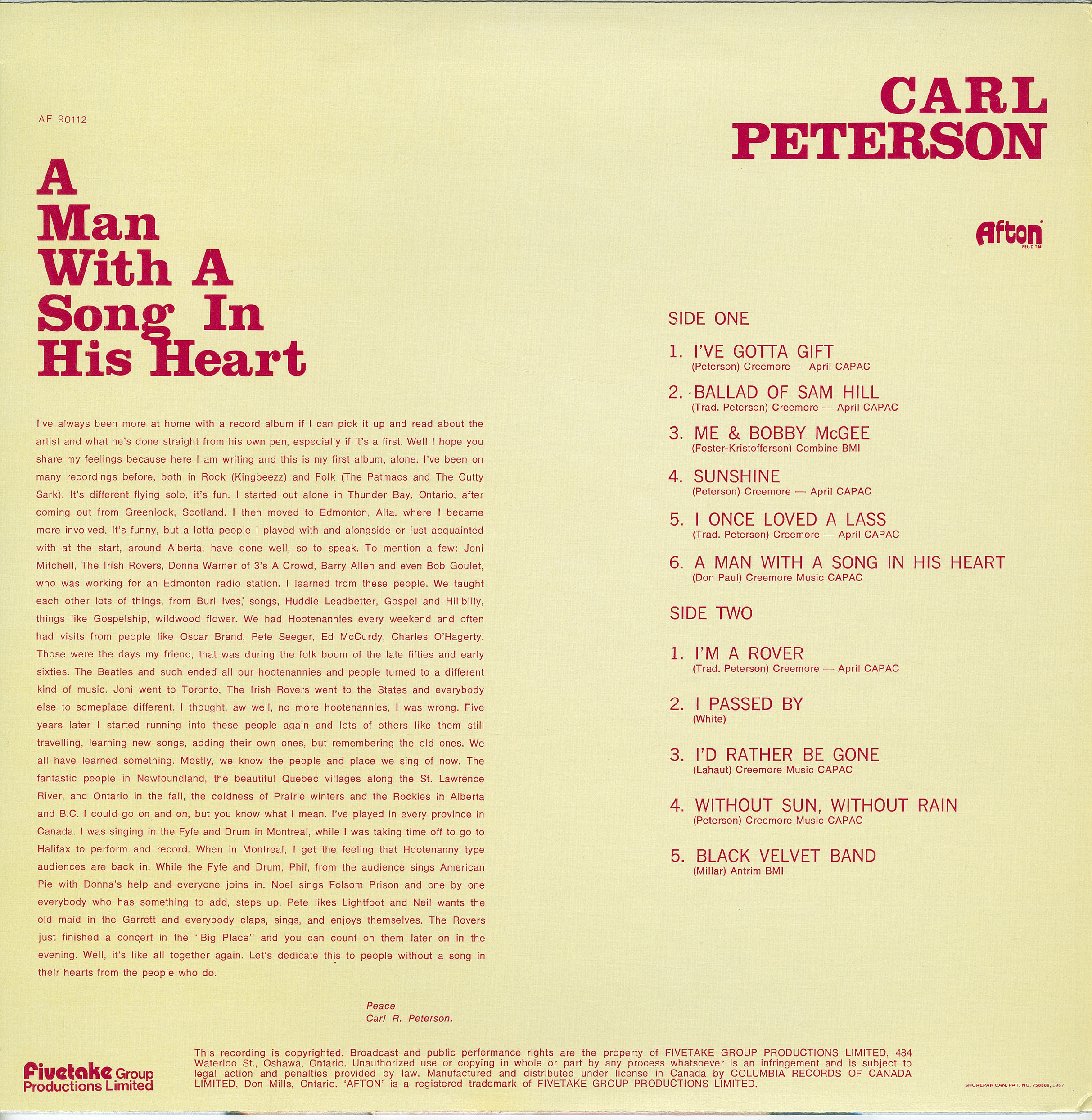 Peterson, Carl - A Man With a Song in His Heart