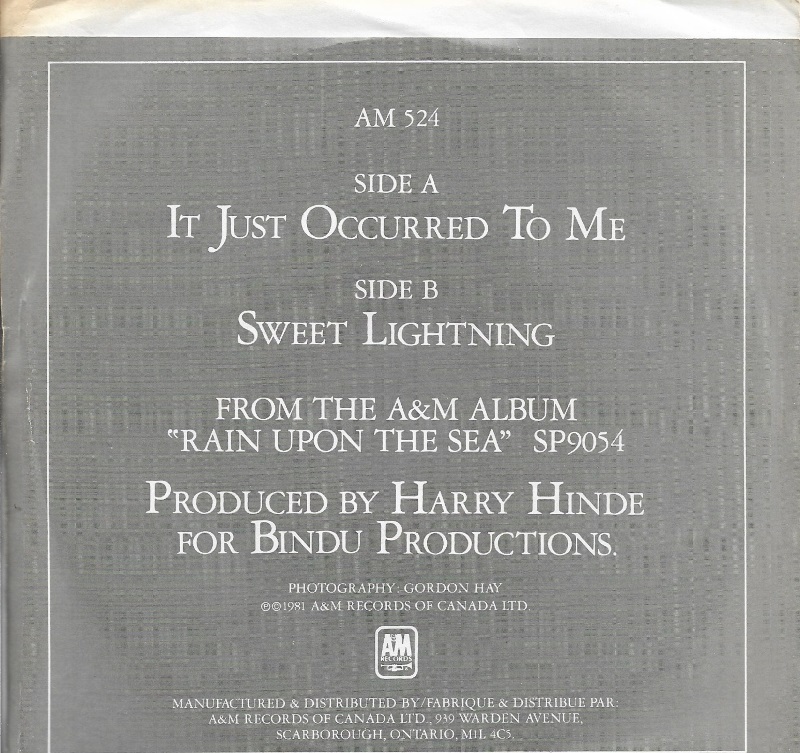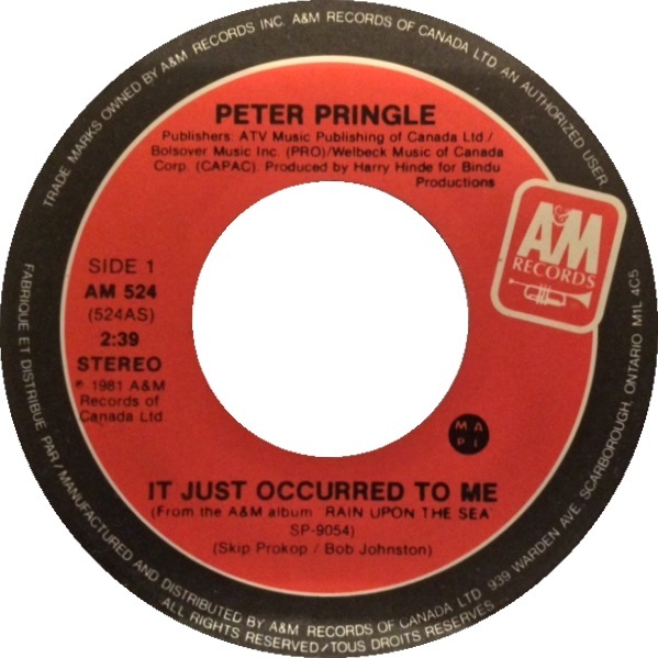 Pringle, Peter - It Just Occurred to Me b/w Sweet Lightning (picture sleeve)