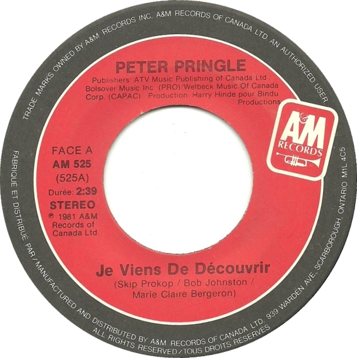 Pringle, Peter - Je Viens De Découvrir b/w Je Viens De Découvrir (Version Instrumentale) (picture sleeve)