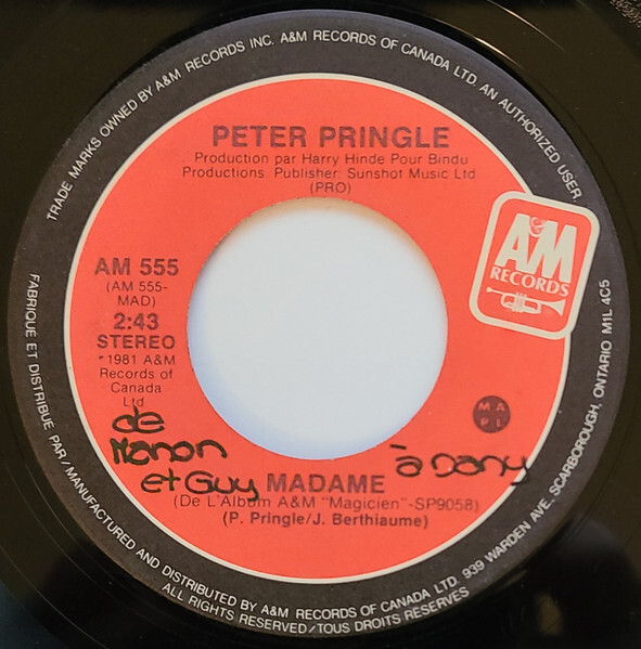 Pringle, Peter - Madame b/w Tant De Jours, Tant De Nuits