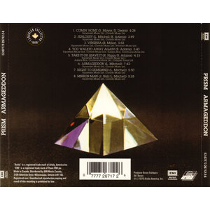 Armageddon is by far Prism's best album, with the band sounding faultless through all of the eight tracks. The songwriting is sharp and thoughtful, there's an even amount of guitar and keyboard interplay, and, on the whole, the album sports a sturdy, mature feel. More importantly, Bruce Fairbairn manages to elevate the band slightly above the arena rock norm, even if it is for a short while. The album's title track is the band's best song, employing the Vancouver Symphony Orchestra on their ode to Elvis Presley. "Armageddon"'s fullness comes from the resilient, catchy chorus and the slick but abundant mixture of Norton's drums, Mitchell's guitar playing, and John Hall's stalwart keyboard work. "Night to Remember" is a simple but elegant ballad aimed at the teenage crowd, eventually becoming Prism's highest-charting single on the Canadian charts, reaching number 11. "Virginia" chugs along with its locomotive-like guitar riffs; "Mirror Man" sparkles in an abundance of synthesizer; and Bryan Adams' "You Walked Away Again" is spotless because of its pop/rock amiability. The other three tracks are anything but leftovers, combining Tabak's voice with the rest of Prism's accomplished instrumental output. Although the following year's Young & Restless tried to emulate Armageddon's solid stature, it fell short, and the band would never recapture this album's prowess.