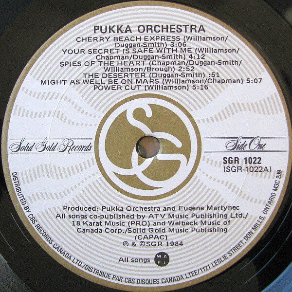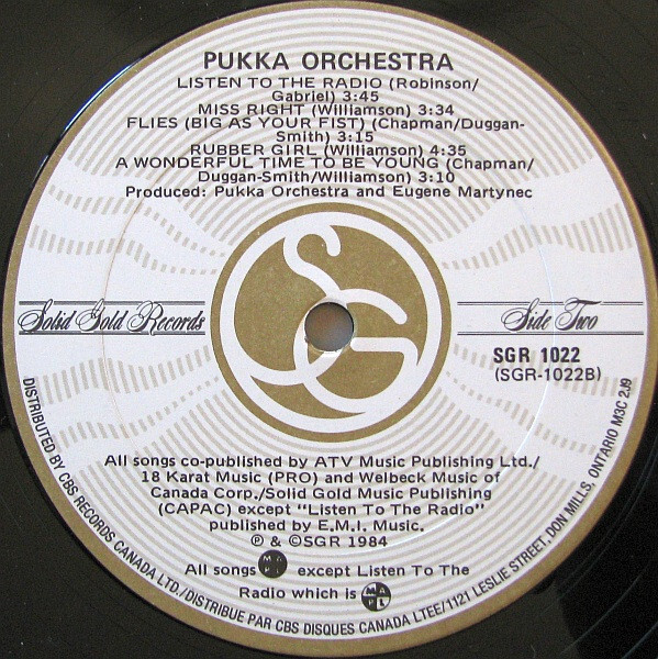 The Pukka Orchestra (a Hindu term meaning "first rate", "permanent", "genuine") was formed in Toronto during 1979 and released a humorous independent single "Rubber Girl" in 1981.